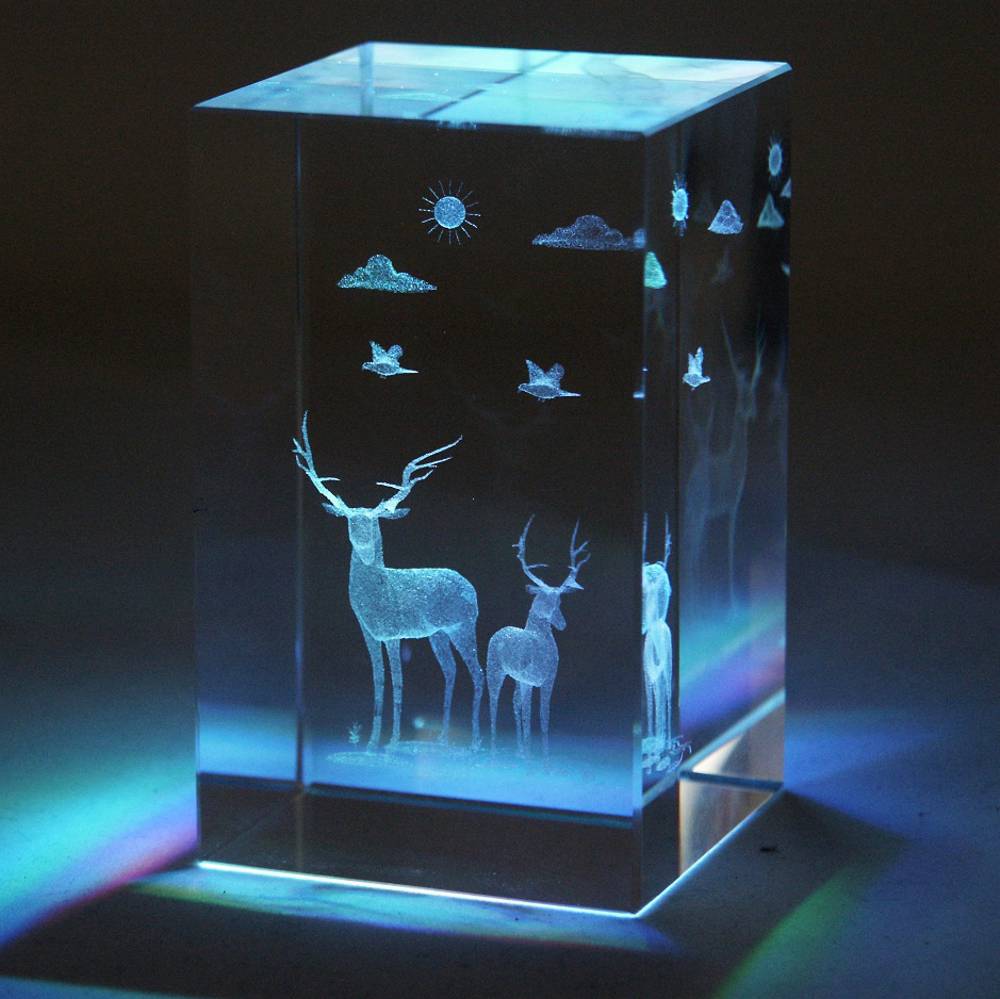 Cena obsahuje 3D laser objektu, skleněný kvádr 50x50x80 mm vyrobený z optického skla a balení v papírové krabičce.