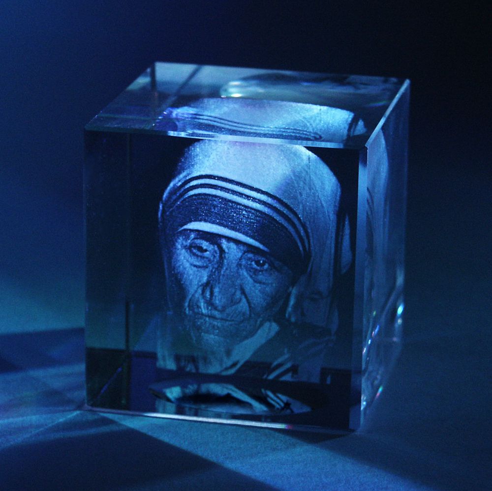 Cena obsahuje 3D laser portrétu vyobrazené osobnosti, křišťálovou krychli 60mm vyrobenou z optického skla a balení v papírové krabičce.