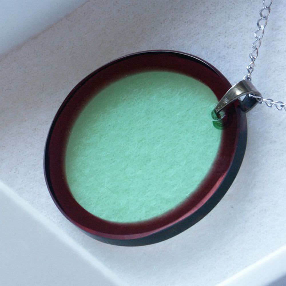 Designový náhrdelník se skleněným přívěškem a stříbrným řetízkem.
