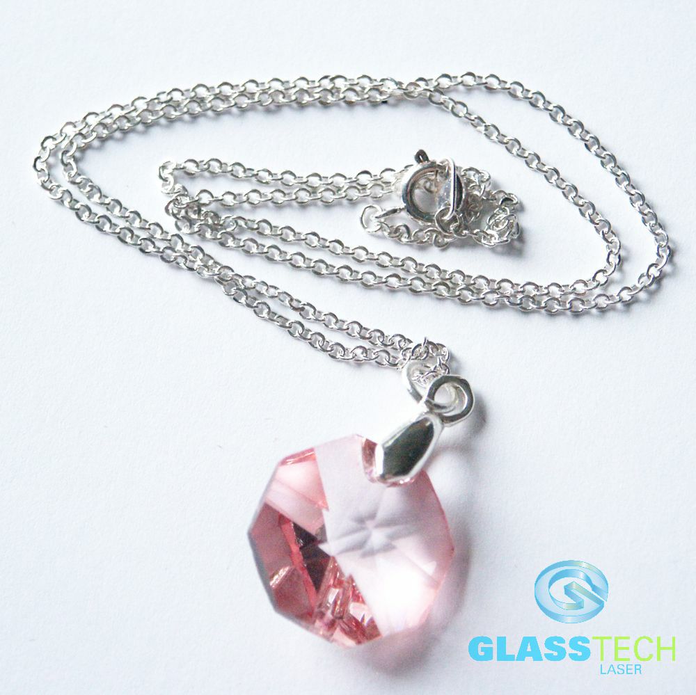 Růžová skleněná Feng Shui hvězda o průměru 18 mm zavěšená na řetízku dlouhém 430 mm.